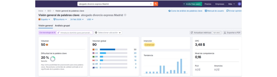 Los usuarios que buscan «abogado divorcio express Madrid» o «penalista violencia género Barcelona» no están navegando por curiosidad. Tienen un problema legal urgente y necesitan solucionarlo YA. Estas búsquedas convierten entre un 15-25%, muy por encima de otros sectores.